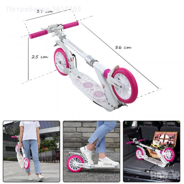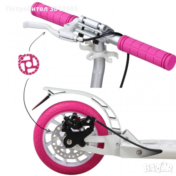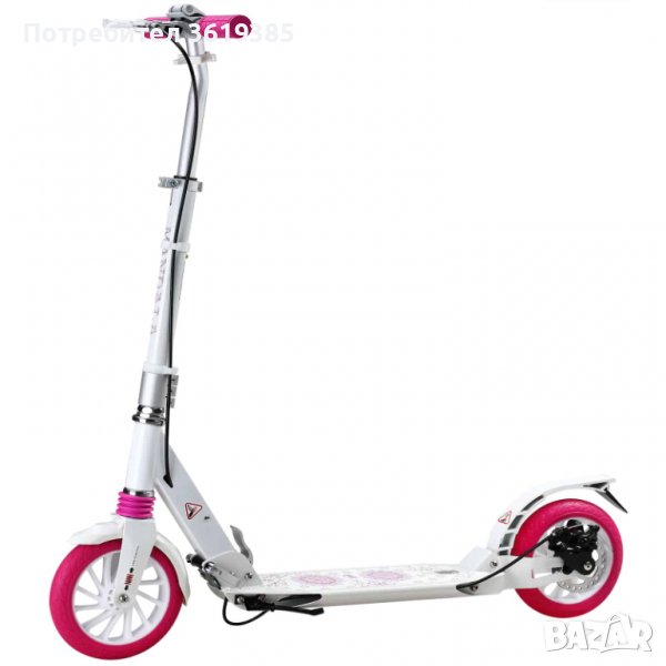 Модерен, високотехнологичен скутер с двойно окачване, дискова спирачка, крачна спирачка и 200 mm PU колела с бързи сачмени лагери ABEC-9. Лесно сгъваем и лесен за пренасяне.