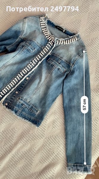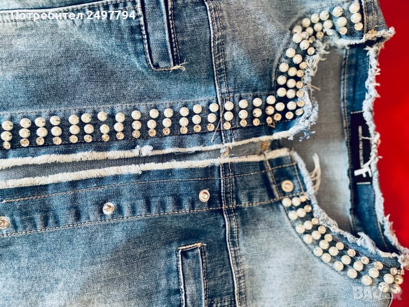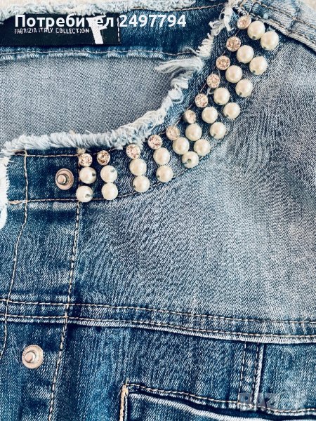 Дамско дънково яке с декорация перли и камъни, без забележки