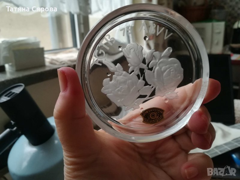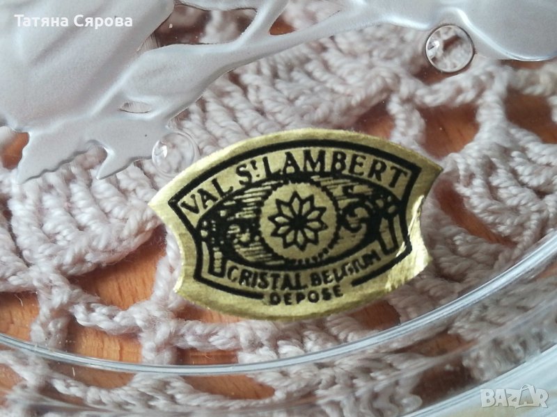 Val Saint Lambert е белгийски производител на кристално стъкло, основан през 1826 г. и базиран в Seraing с кралска заповед на крал Алберт II. Комплект кристални подложки от Val-Saint-Lambert, произведени в Белгия, дълбок кристал Fruits Crystal cut, кристален релеф. Лимитирана серия произведена по случай 75 годишнината на профсъюзите в Белгия. Диаметър 8 см.