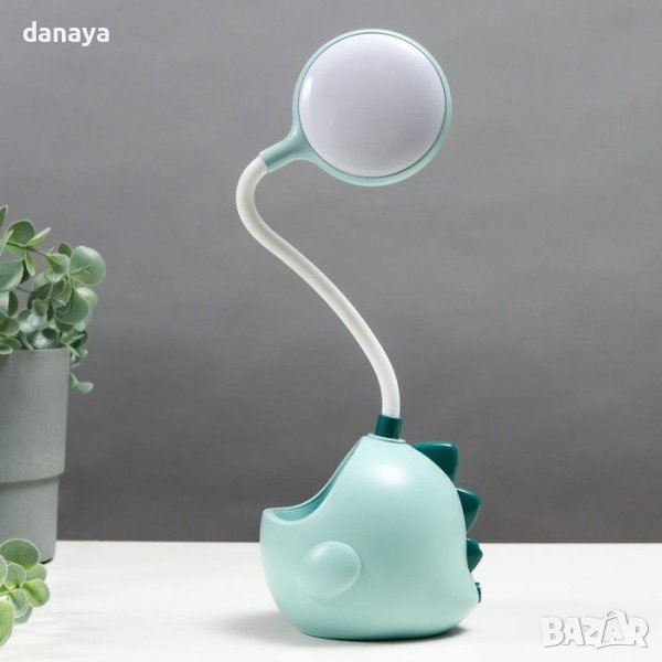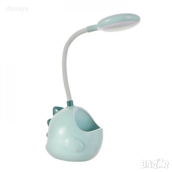 Безжична нощна Led лампа с USB зареждане. Креативен дизайн – форма на динозавърче, с място тип моливник за съхранение на моливи, химикалки и други дребни аксесоари. Тази преносима нощна лампа е чудесна за работа вечер, за четене, работа на бюро и всякакви други дейности, които изискват повече светлина. Лампата разполага с гъвкаво рамо, с което можете да я настроите в желаната от вас позиция.