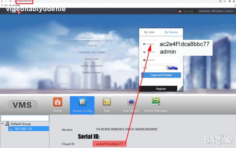 , както и CMS софтуер за управление с централната платформа "XMEYE";