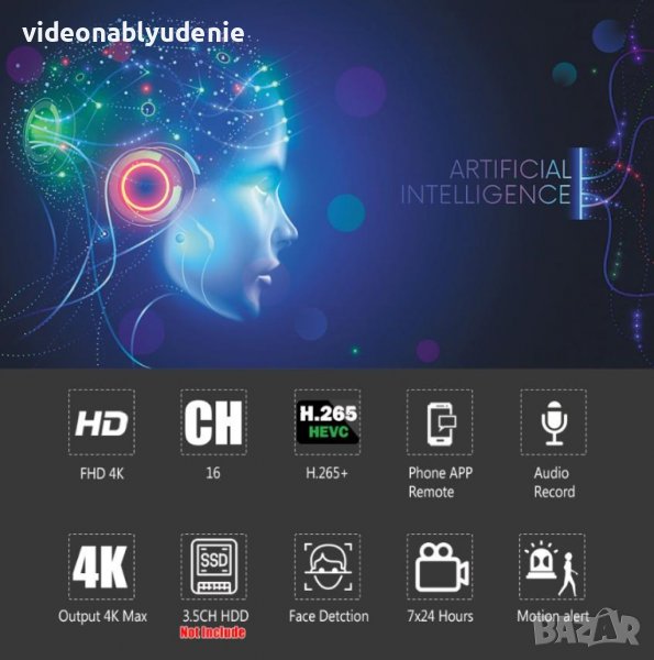 FHD 4K Ultra HD ONVIF P2P H.265+ HEVC 16ch NVR 8MPx IP Камери AI Human Detection Лицево Разпознаване