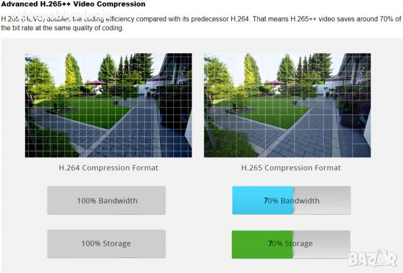 Предимствата на H.265+ компресията пред H.264 :