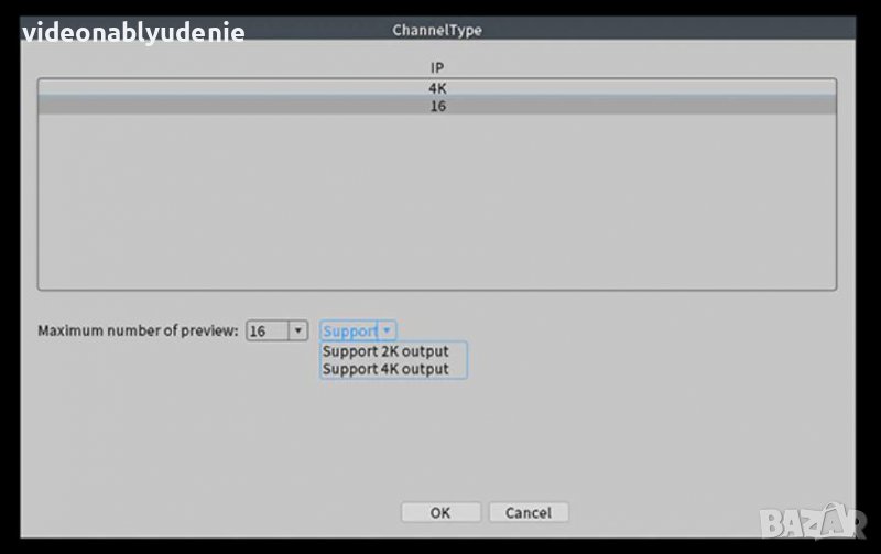 Видео вход (IP): 16 Канала за до 16 броя до 8 Мегапикселови IP Камери с резолюция 3840х2160p (4K)