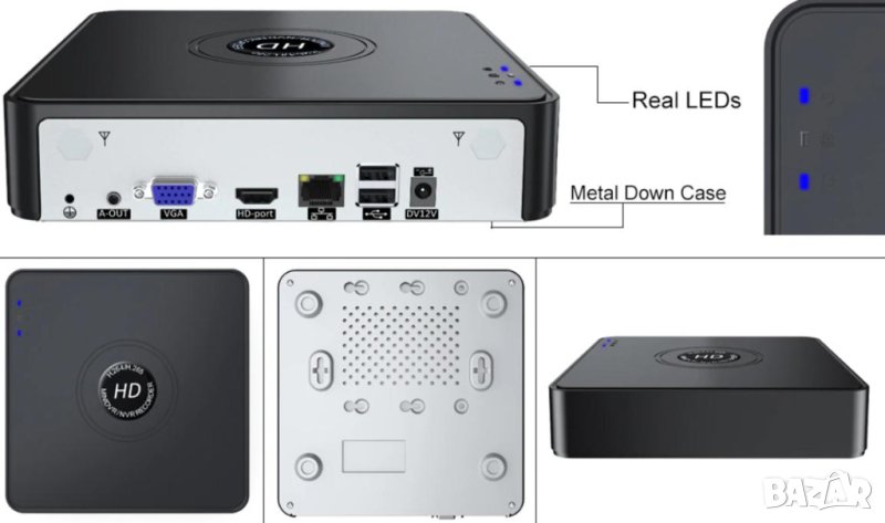 Устройството поддържа до 8 ТВ хард диск за запазване на записите за изключително дълъг период от време. Разполага с възможност за настройка, управление и наблюдение през смартфон чрез мобилно приложение или през компютър с безплатен софтуер.