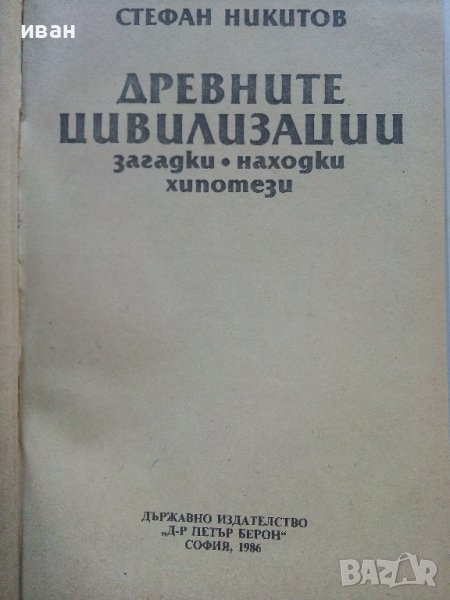 Древните цивилизации -загадки,находки,хипотези - Стефан Никитов - 1986г. → Обява 39457621