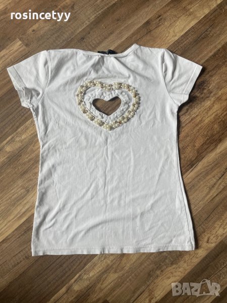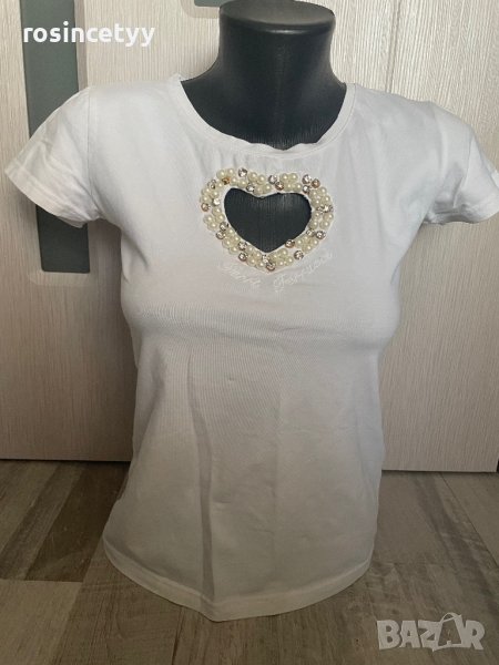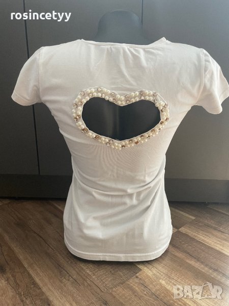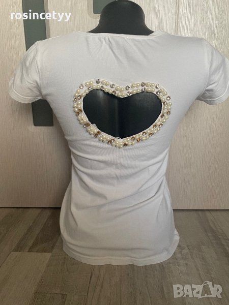 Нова тениска със сърце от перли в бял цвят. Изпращам с Еконт