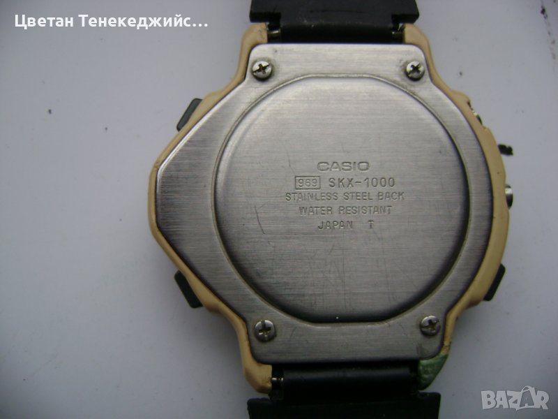4.Часовник Casio SKX-1000.Оригинален японски.Работи точно.Хронометър(засича няколко времена),аларма,водоустойчив 100м.Полимерна каишка.Леки драскотини по стъклото и изграждан корпус на патента долу в ляво.-70лв.