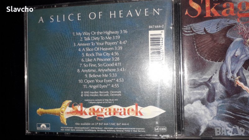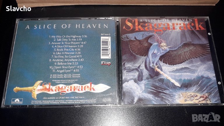 1..Skagarack – A Slice Of Heaven (1990, CD) - Skagarack е хард рок група от Дания, създадена през 1984 г. от Torben Schmidt, Alvin Otto и Jan Petersen. Скоро след това Томи Расмусен и Мортен Мунк се присъединяват към групата. В този състав те записват три албума - Skagarack (1986), Hungry For A Game (1988) и A Slice Of Heaven (1990).В началото на 90-те години Torben Schmidt става соло и съставът се променя. Skagarack се разпадат през 1994 г., година след издаването на първия и единствен албум, записан с новите членове на групата.///