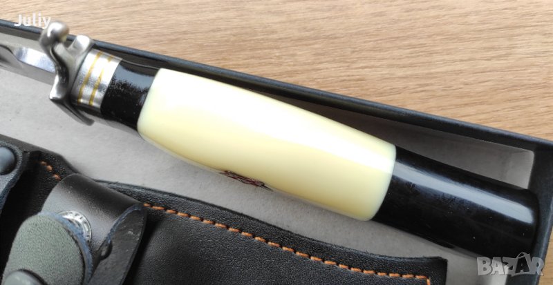 Ножа се предлага с кожена кания и кутия подходяща за подарък.