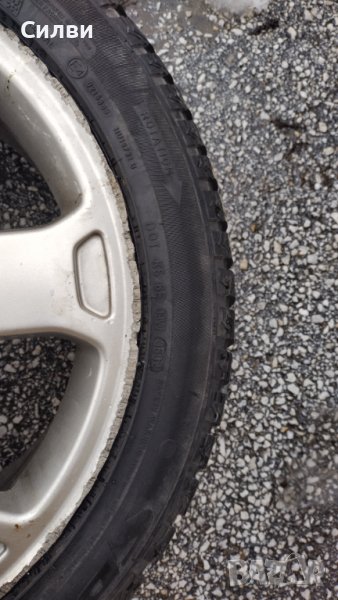 Гумата е стара, но е очудващо запазена, свежа е направо като нова, и мека и здрава. Джантата е права и не изпуска въздух, няма спукано, няма криво, напълно наред е. Единствено по борда външно има надрано.