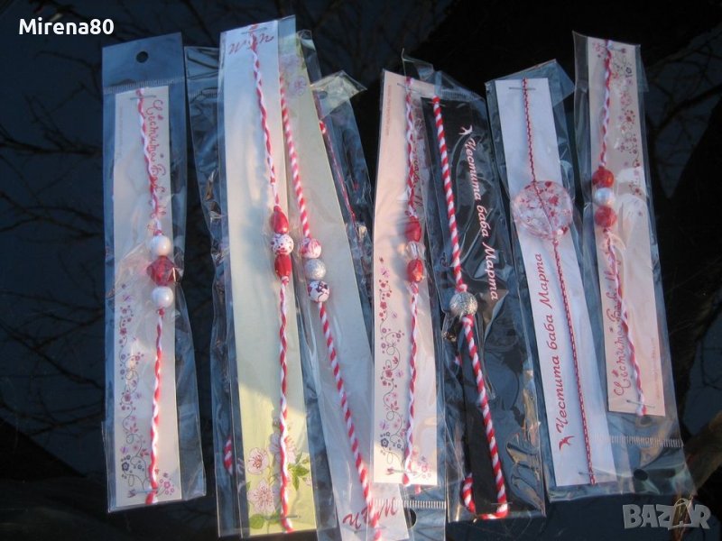 мартеници на едро. Повечето са правени лично от мен и са уникални модели, които няма да видите на друго място. Минимум за поръчки 20 лв ! Цена на десятките микс - 0.40 лв , десятки с кокичета - 0.80 лв. За останалите - цени на лични, моля. Има мартеници тип бижута, кожени гривни, пръстени и т.н.