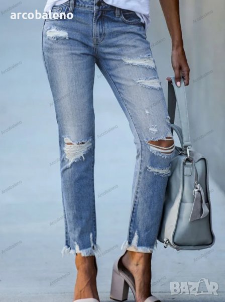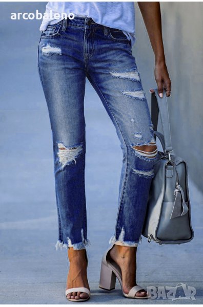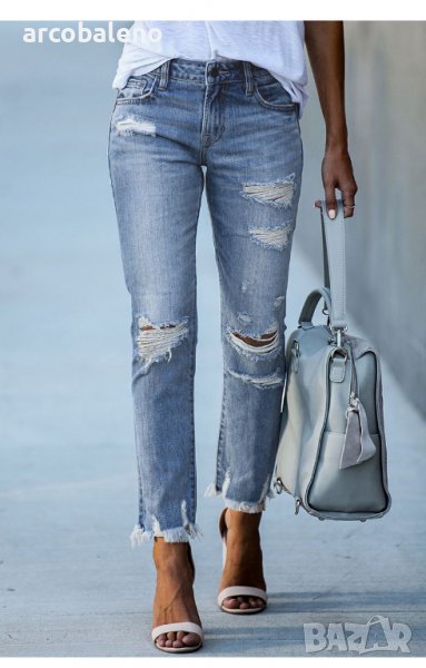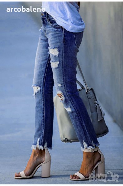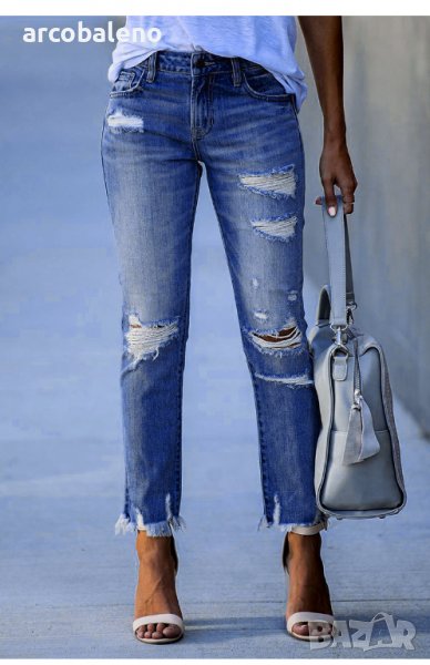 Дамски накъсани изпрани протрити дънки, 3цвята