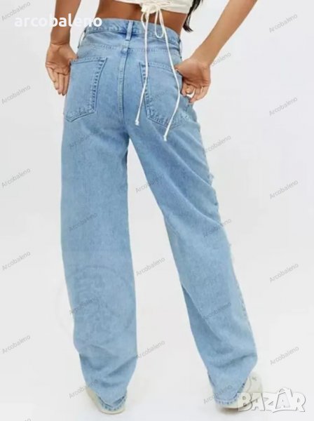 Дамски скъсани свободни широки дънки с висока талия, 2цвята