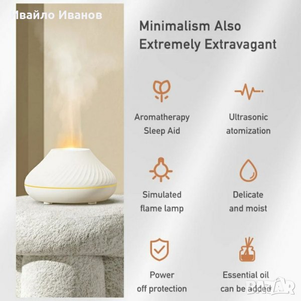 Ароматерапевтичен дифузер с ефект на пламък + 10мл.ароматни капки-подарък