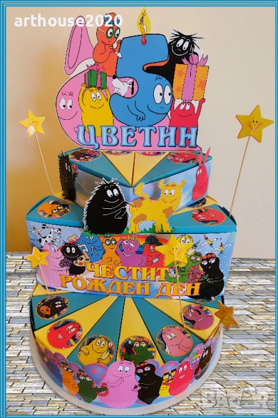 Картонена торта Барбарони,покани за рожден ден,банери за стена,свирки и др.