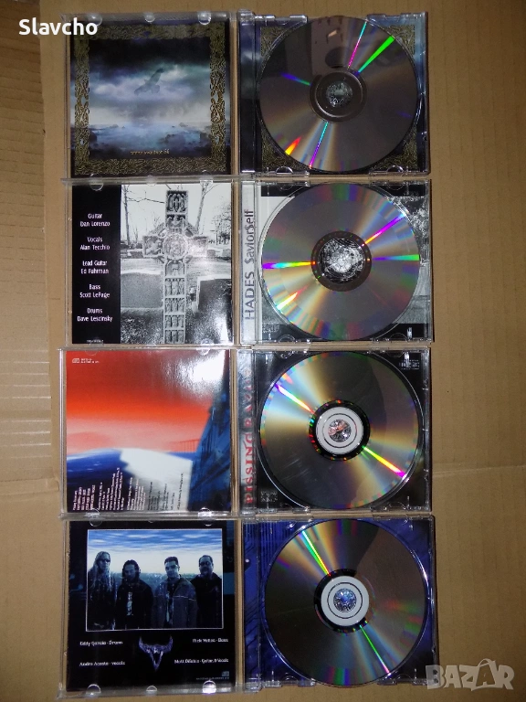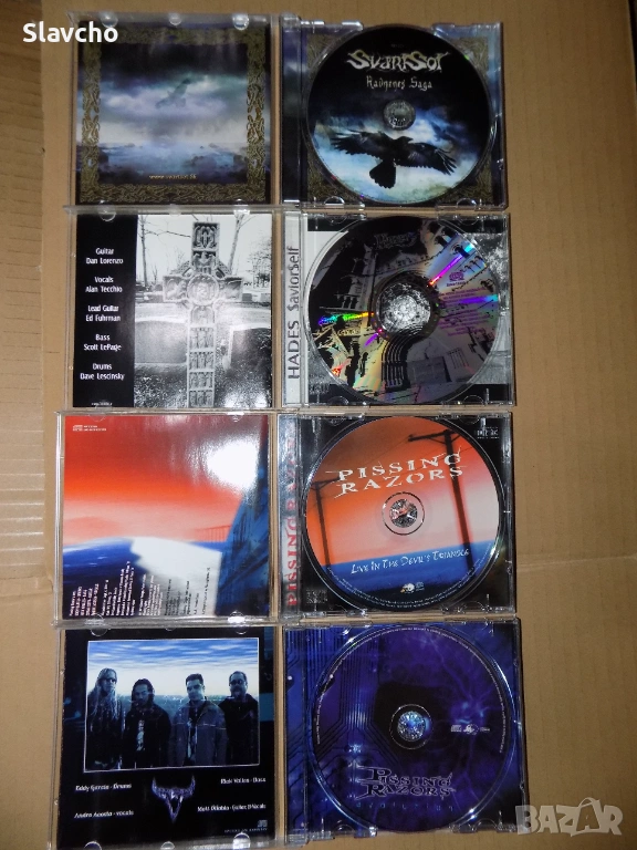 Дисковете са почти като нови, викинг метал от Svartsot и траш метълите Хадес, и груув метъл от Pissing Razors,, внесени от Дания,,,,ЦЕНАТА Е ЗА БРОЙКА,,..САМО ВЗЕТИ ЗАЕДНО КОМЕНТАР...