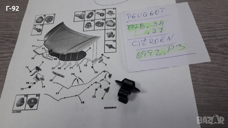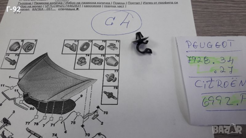 7928.34**NEU**PSA**CITROEN**PEUGEOT**ЩИПКА ЗА ЩЕКАТА НА ПРЕДНИЯ КАПАК **