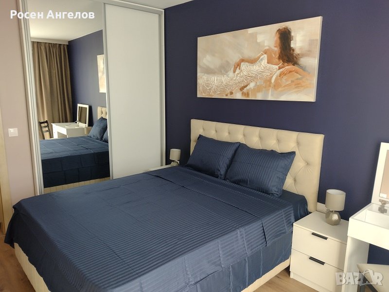 ЛУКС, Двустаен, Обзаведен, Луксозни общи части, Басейн, Два климатика /във всяка стая/, Два телевизора, Миална, Пералня, Парко-място в подземен паркинг на сградата, Панорамна гледка към басейна;