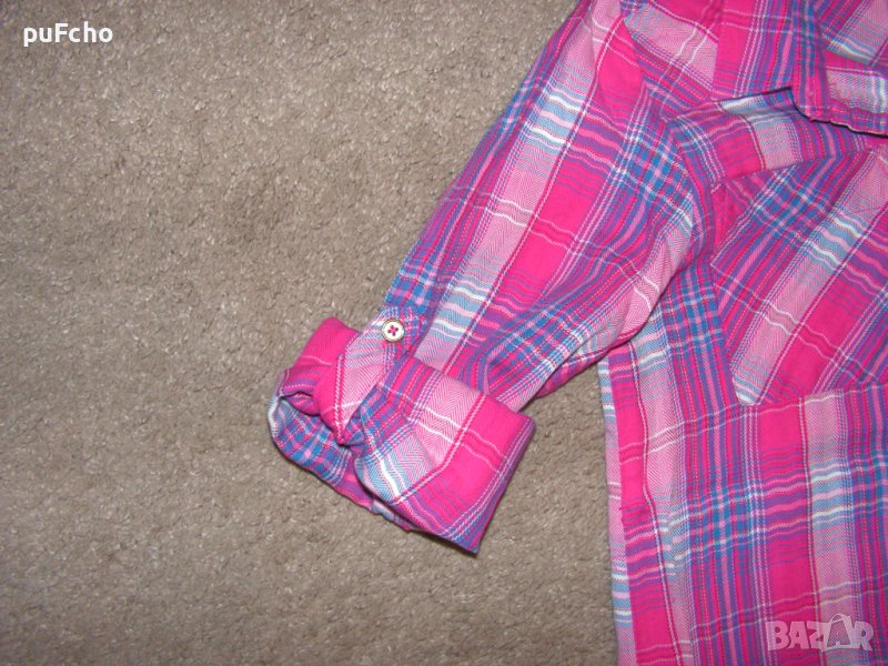 2. Карирана риза, памучна. Малко носена. Без забележки, добре запазен цвят. Ръкава може да се закопчава като къс ( има снимка ).