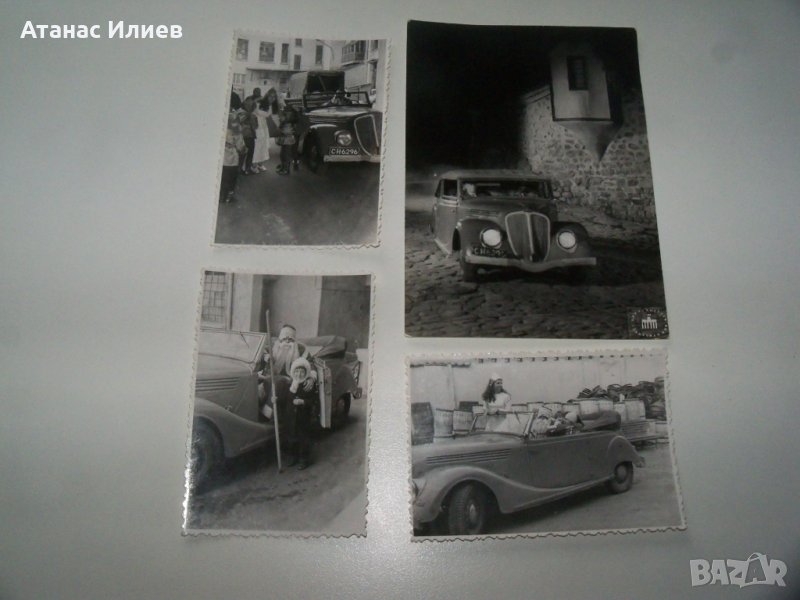 4 соц снимки Renault Viva Grand Sport и дядо Мраз, 1973г. Автомобила е произвеждан от 1934г. до 1939г. Снимките са правени в България. Едната е голям формат 13х18 см, а останалите три са 12.5 х 18.5 см. Всички снимки са в отлично състояние.