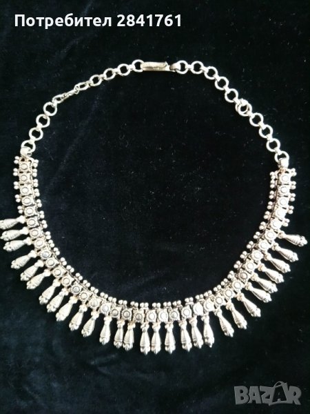 Масивно сребърно колие с орнаментика в старинен винтидж стил. Тежи 60,11 гр, проба 925. Много е красиво на живо. Дължина 43 см