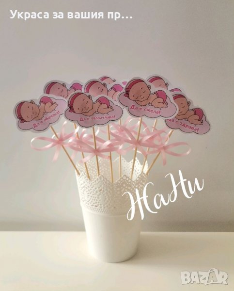 Топери за бебешка погача с пожелания за орисане на бебето → Обява 39467427