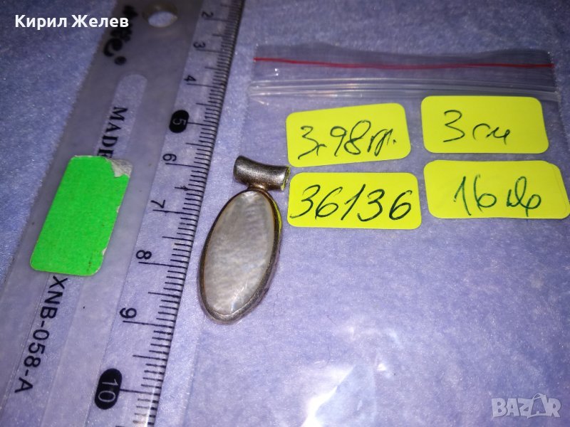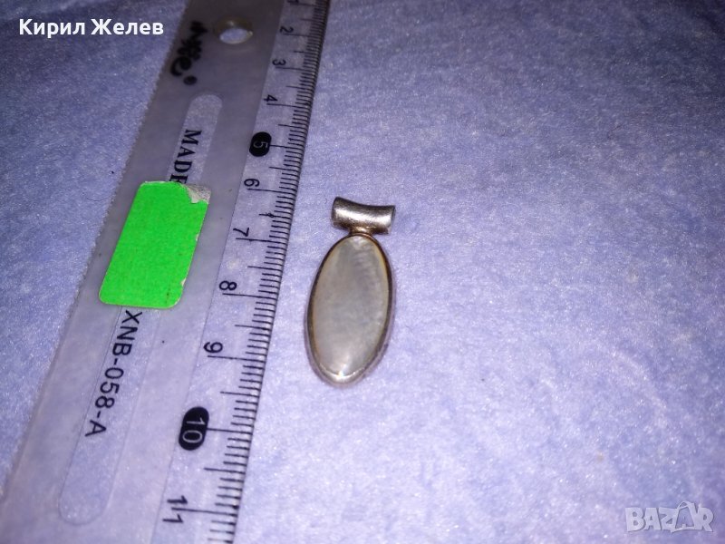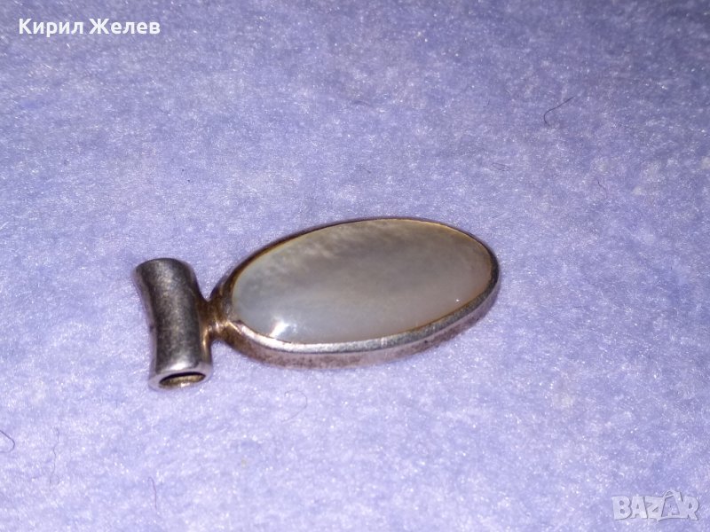 ЕЛЕГАНТЕН СРЕБЪРЕН АР ДЕКО СТИЛ МЕДАЛЬОН АНГЛИЯ СРЕБРО 925 с ШЛИФОВАН СЕДЕФ 36136