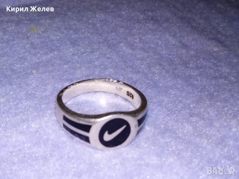 NIKE Марков ЕМАЙЛИРАН СРЕБЪРЕН АРТ ПРЪСТЕН СРЕБРО 925 АК - НАЙК ОРИГИНАЛЕН с МАРКИРОВКИ 34613
