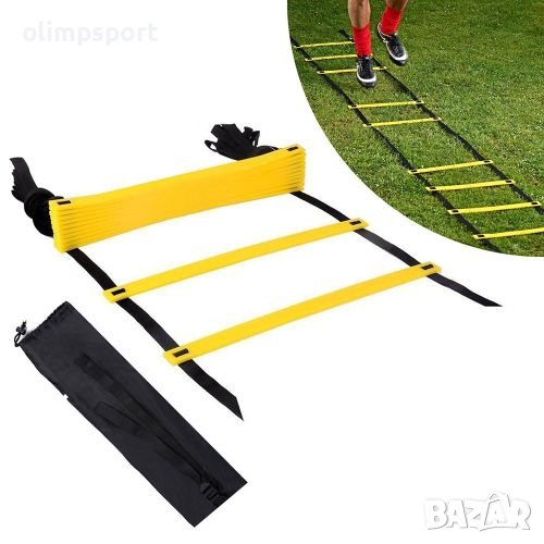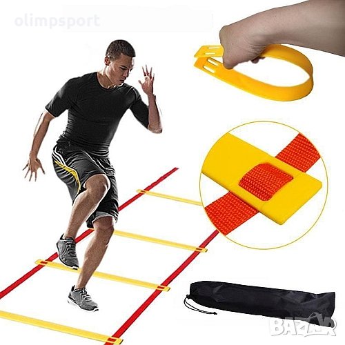 Стълба за бързина и ловкост с дължина 10 м, 16 преки (15 стъпала). Подходяща за употреба в различни спортове за подобряване на техниката, ловкостта, динамиката, координацията и бързината на краката. Комплектът включва чанта за удобно съхранение и пренасяне. Дължина - 10 м. Ширина - 50 см. Тегло - 1.1 кг.