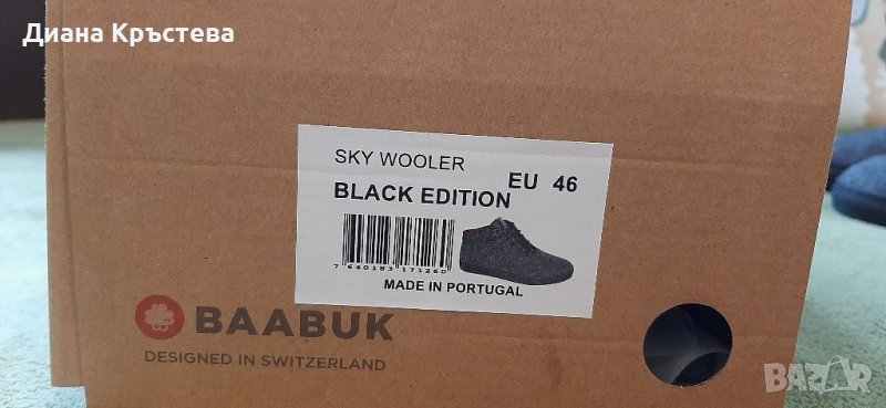 Продавам мъжки спортни обувки Baabuk, модел Sky Wooler, сиви, размер 46. Изработени от чиста вълна, изключително комфортна среда за крака и в студено, и в по-топло време. Обувани са веднъж - на практика са нови. Закупени от сайта на марката на цена 139 Евро.