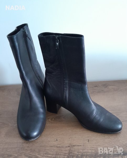 Почти нови боти на Daris, обути веднъж. Естествена кожа, удобен ток с височина 5 ,5 см.Височина на сайта 20 см. Закопчаване с цип. Обиколка в най-горната част 30 см, има допълнително вградени ластици.