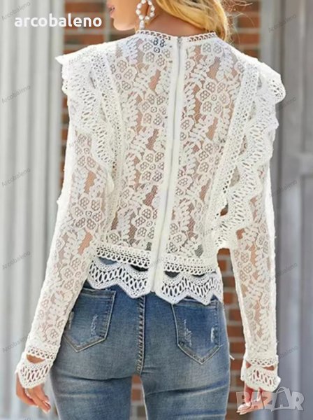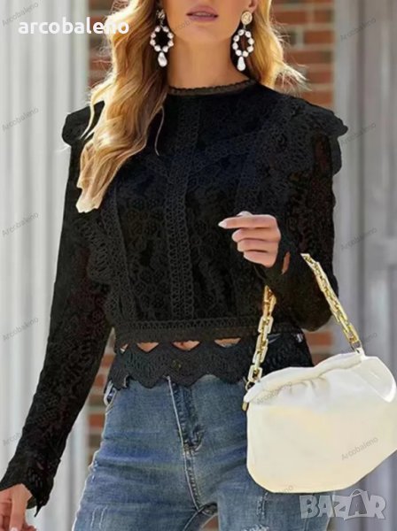Дамска едноцветна блуза с бродирана дантела, 3цвята