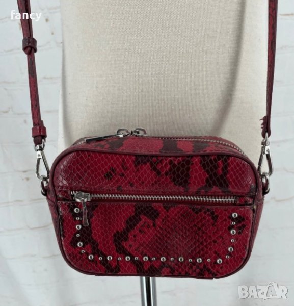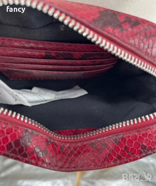 Мини чанта Zara. Еко кожа в змийски принт. Закопчаване с метален цип. Вътрешен малък джоб за визитки и карти. С подплата. Външен джоб с цип.