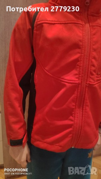 Оригинално яке -детски софтшел с размер 122-128 марка BARN OG LEKER,, , с два странични и един горен джоб с ципове и един на левия ръкав с цип. От ветро и водоустойчива материя. Цвета е ярко червено не си личи от снимките. Без забележки с преглед и тест преди заплащане.