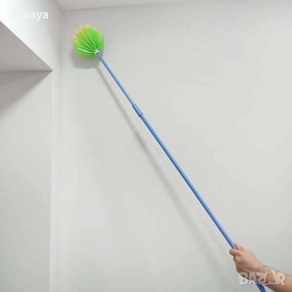 Четка за почистване на високи места, или трудно достъпни. Четка за обиране на паяжини с много дълга телескопична дръжка, която достига и до най-високия ъгъл в дома. Паяжините вече не са проблем, защото се почистват лесно и бързо.