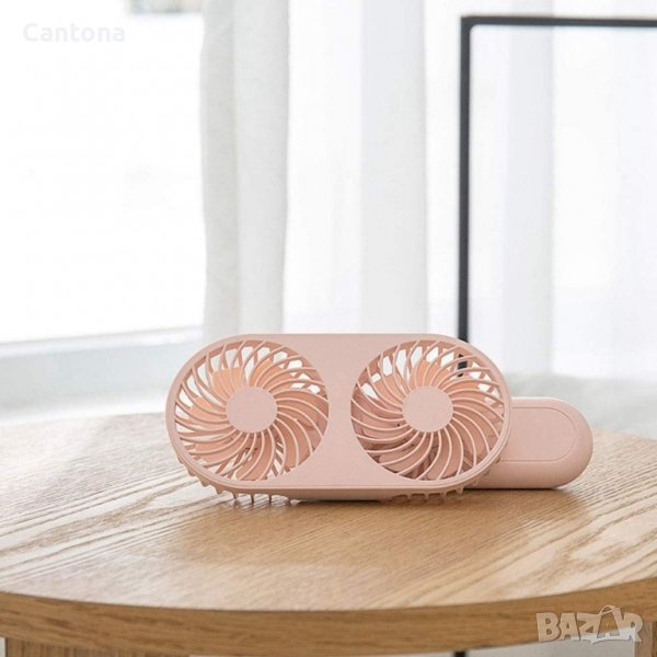 Акумулаторен ръчен вентилатор с 2 глави, 3 степени, Li Ion батерия, micro USB
