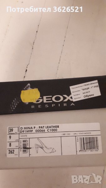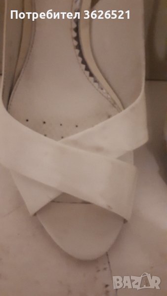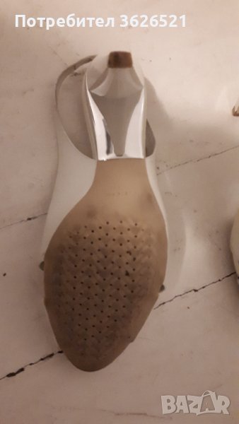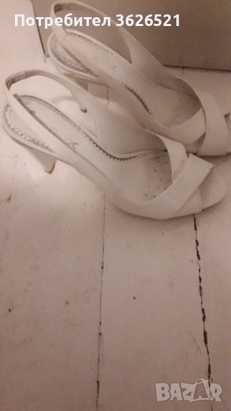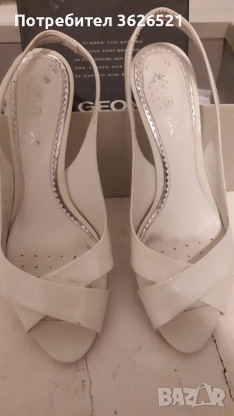 Бели официални дамски сандали на висок ток Geox от естествена кожа, 39 номер. Дишаща подметка, изработена по известната технология на Geox. Подходящи са за официални поводи - сватби, коктейли. Имат следи от употреба, видими от близо, но не и когато са на краката - на снимките са снимани от близо, за да се видят.