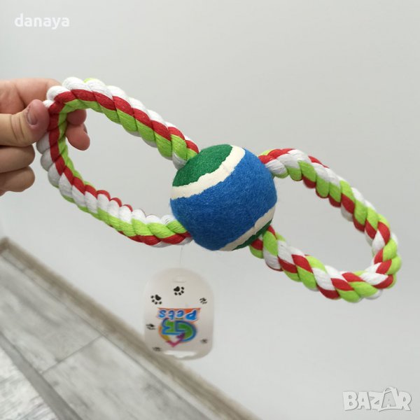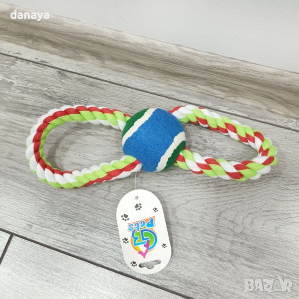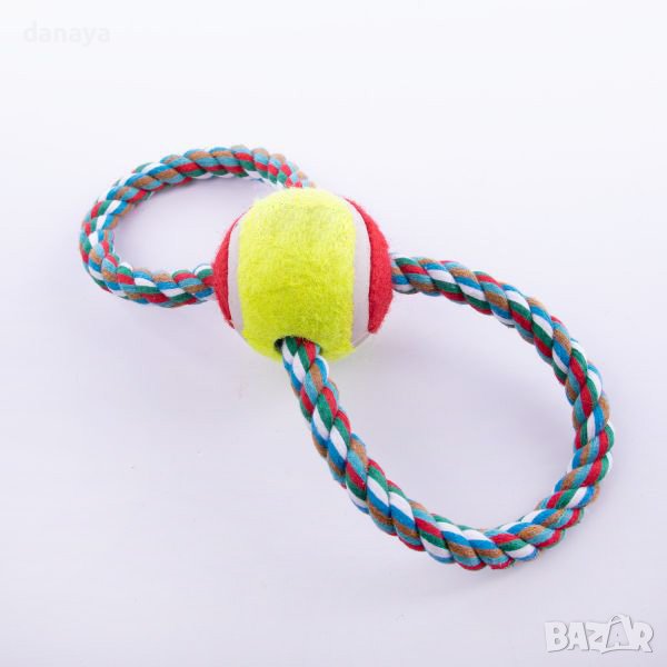 Играчка за домашен любимец. Занимателна играчка за куче топка с въже осморка.