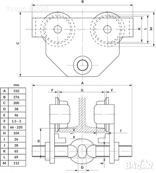 Служи за прецизно позициониране и лесно преместване на по-големи товари чрез макара. регулируема за релси на греди в I с широки или стандартни крила.