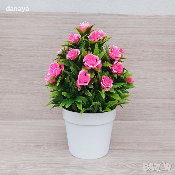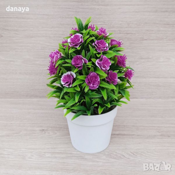 Изкуствено цвете в саксия. Красиви изкуствени цветя в пластмасова кашпа. Чудесна декорация за дом или офис. Предлагат се в различни цветове на цветчетата – червени цветя, розови цветя, жълти цветя, лилави цветя, оранжеви цветя, сини цветя.