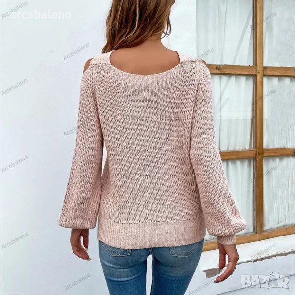 Дамски едноцветен пуловер с голи рамена, 4цвята