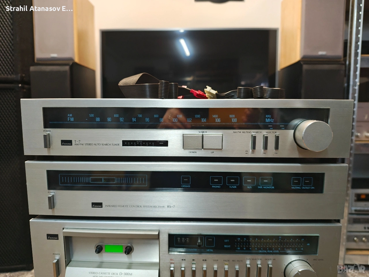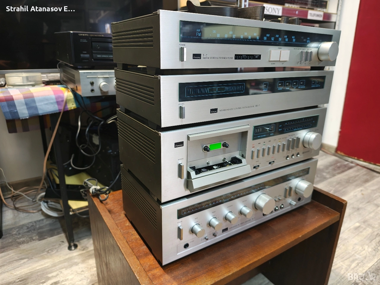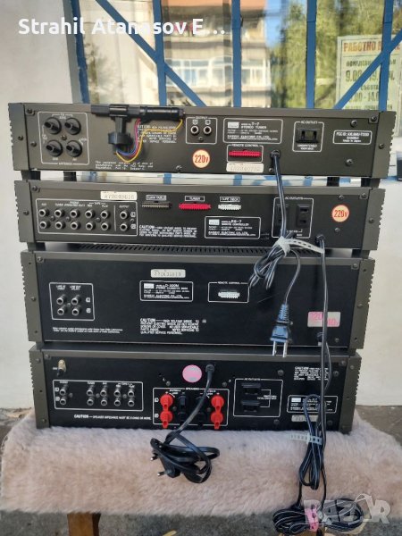 Здравейте на всички ето и един комплект на SANSUI. Много добре запазен и функциониращ. Състоящ се от- усилвател,дек, тунер и приемник на системата за дистанционно управление( контролер с налични кабели, но липсва дистанционно). Цената е за комплекта. Произведени в Япония през 1981 година.