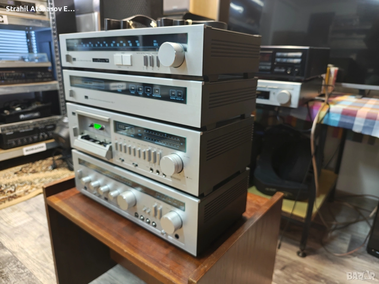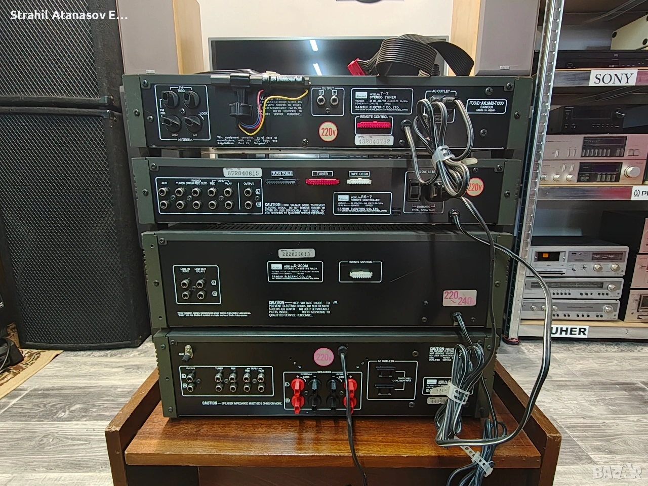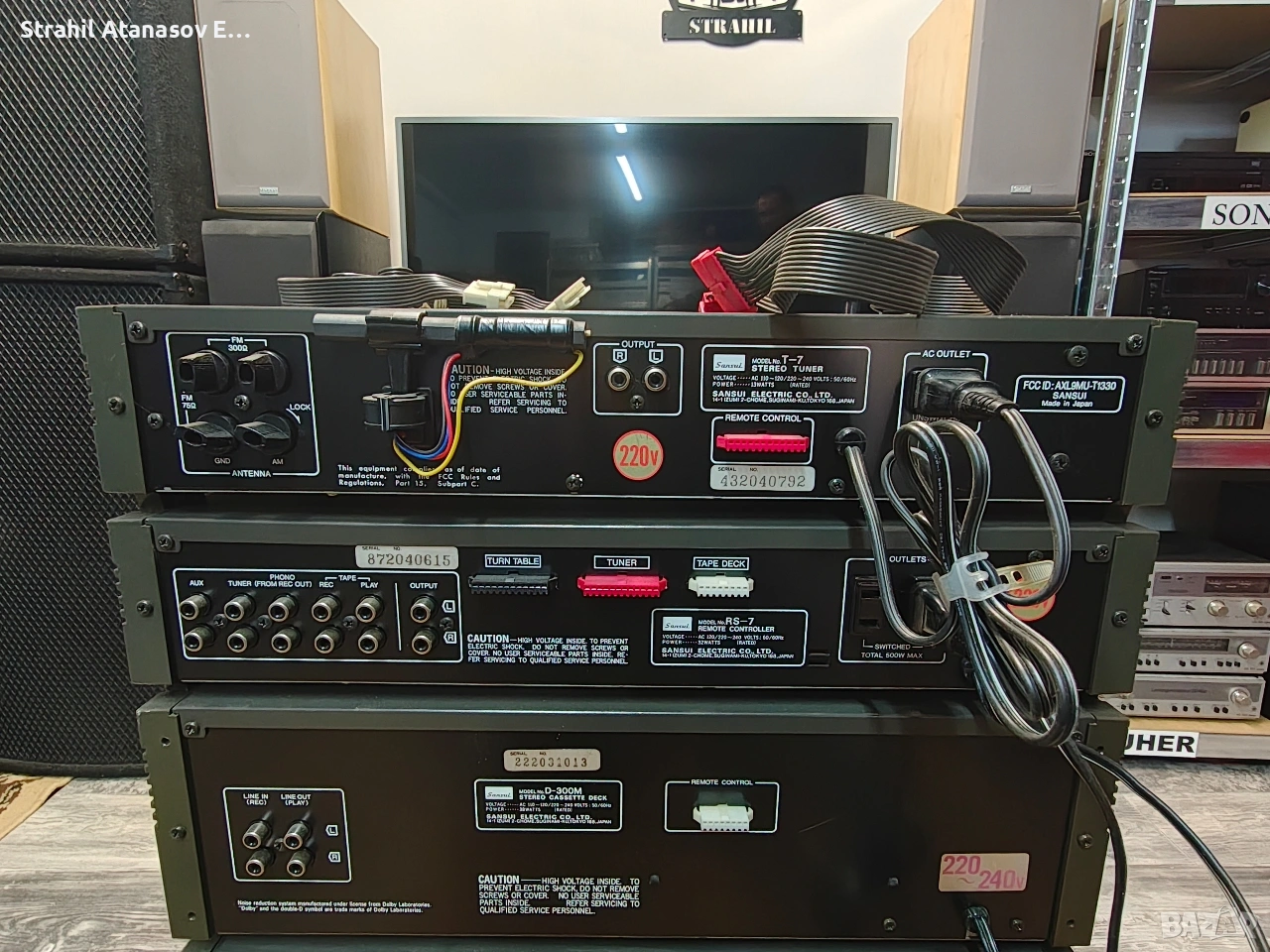 Здравейте на всички ето и един комплект на SANSUI. Много добре запазен и функциониращ. Състоящ се от- усилвател,дек, тунер и приемник на системата за дистанционно управление( контролер с налични кабели, но липсва дистанционно). Цената е за комплекта. Произведени в Япония през 1981 година.