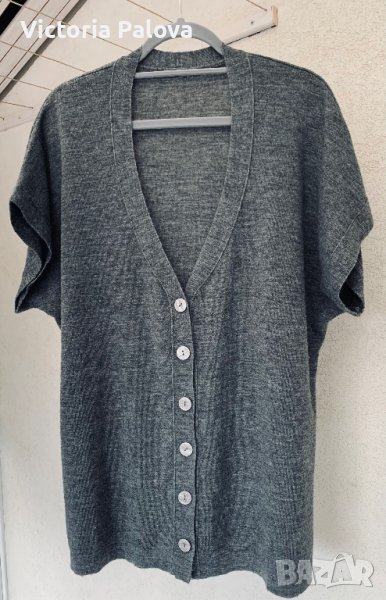 Жилетката е разкошна-гладка,приятна,широка,пада свободно,не описва,прикрива недостатъците по тялото и стои перфектно-актуално и ефектно.рамо-80см,ГО-66см,дължина-78см.