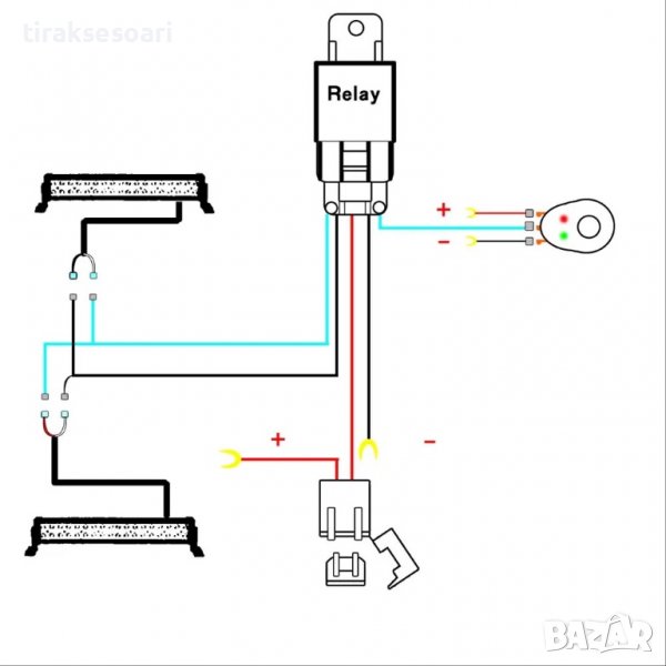 - лед бар 54см, стойки, комплект кабел 3.5 мт. с реле и бутон