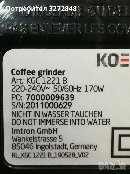 Кафемелачка KOENIC- 170w -немска → Обява 39498747
