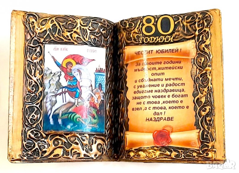 Авторски, ръчно изработени книги-икона със Св. Мина, Богородица, Св. Георги, Исус, Св. Димитър или Св. Николай и оригинално пожелание 80 или 90 год.