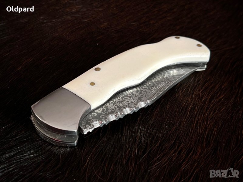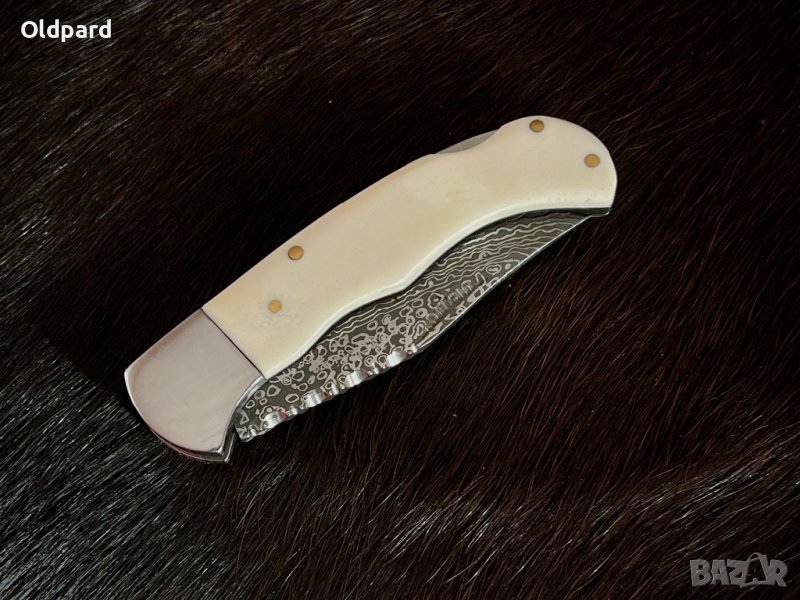Класически сгъваеми джобен нож (серия Дамаск) с костна дръжка.. Винтидж колекция.