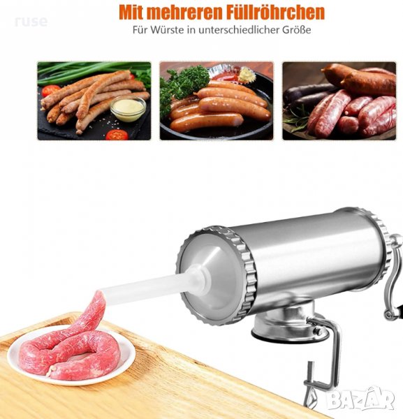 Пълначка/ уред за пълнене на наденици и колбаси е произведен от висококачествен алуминий, устойчив и лесен за почистване.
